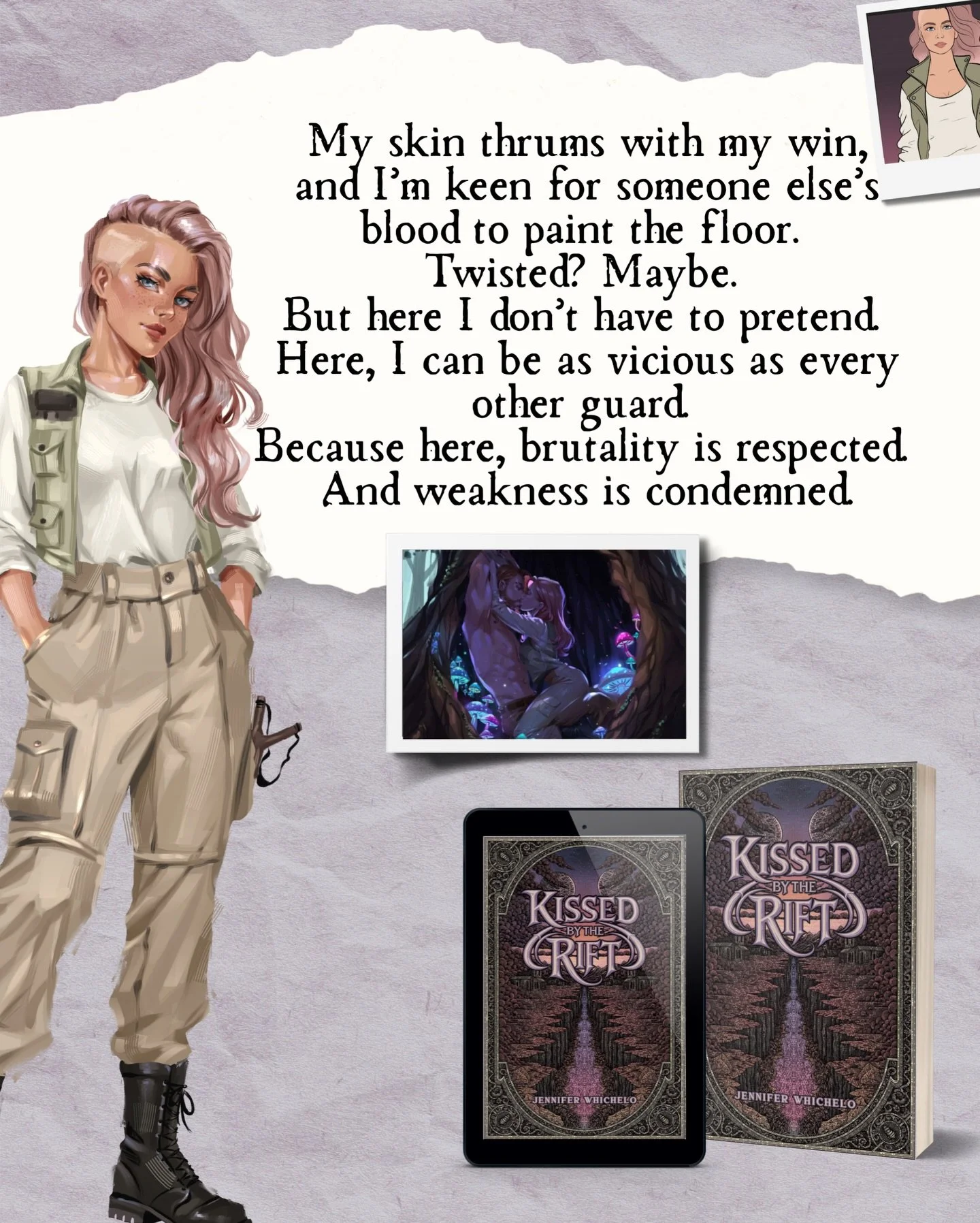Kissed by the Rift is the first book in a brand-new romantic fantasy series. It features a unique dystopian world filled with fast-paced action, a strong female lead, found family, and a mythical prophecy that could unravel their world as they know it. Are you ready to be Kissed by the Rift?.
